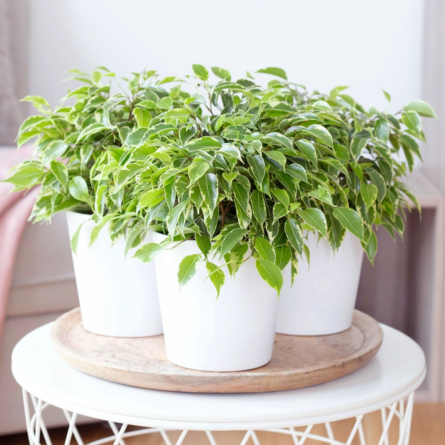 Birkenfeige ‚Kinky‘ In Keramiktopf Weiß, Topf-Ø 12 Cm, Höhe Ca. 25 Cm, 3er-Set