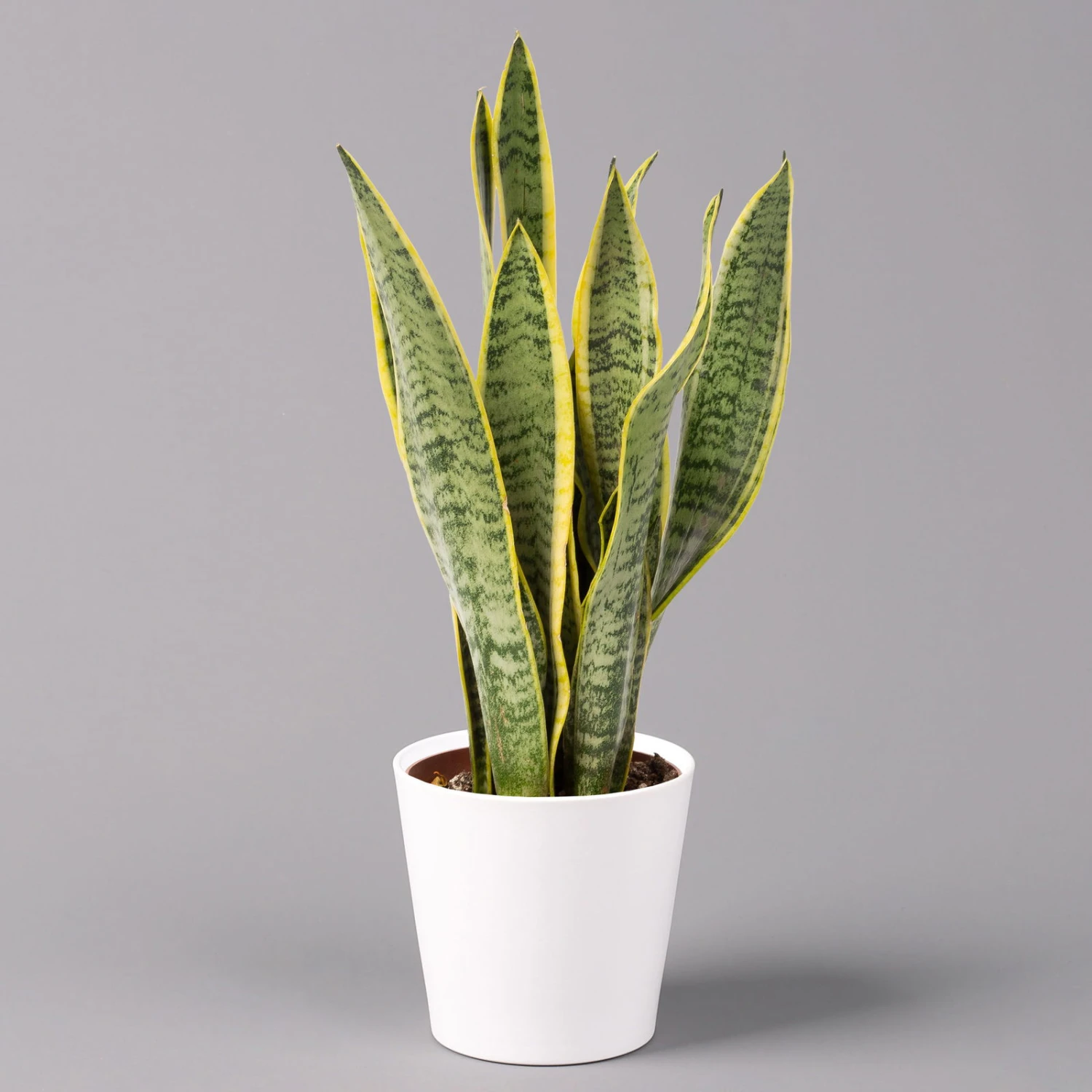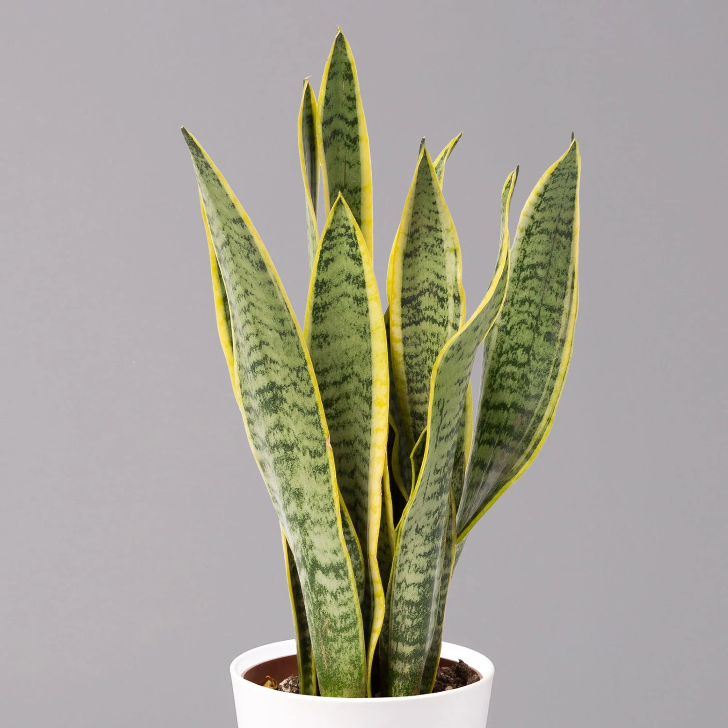 Der Bogenhanf (Sansevieria trifasciata ‚Laurentii‘) gilt als eine der robustesten und pflegeleichtesten Zimmerpflanzen überhaupt und ist auch unter den Namen ‚Sansevierie‘ oder ‚Schwiegermutterzunge‘ bekannt. Charakteristisch sind die riemenartig festen, fleischigen Blätter, deren Blattränder beidseitig gelbe Querstreifen aufweisen. Die grundständigen Blätter entspringen einem Rhizom und enden aufrecht in einer Spitze. Bei guter Pflege kann der Bogenhanf über einen Meter hoch werden.
