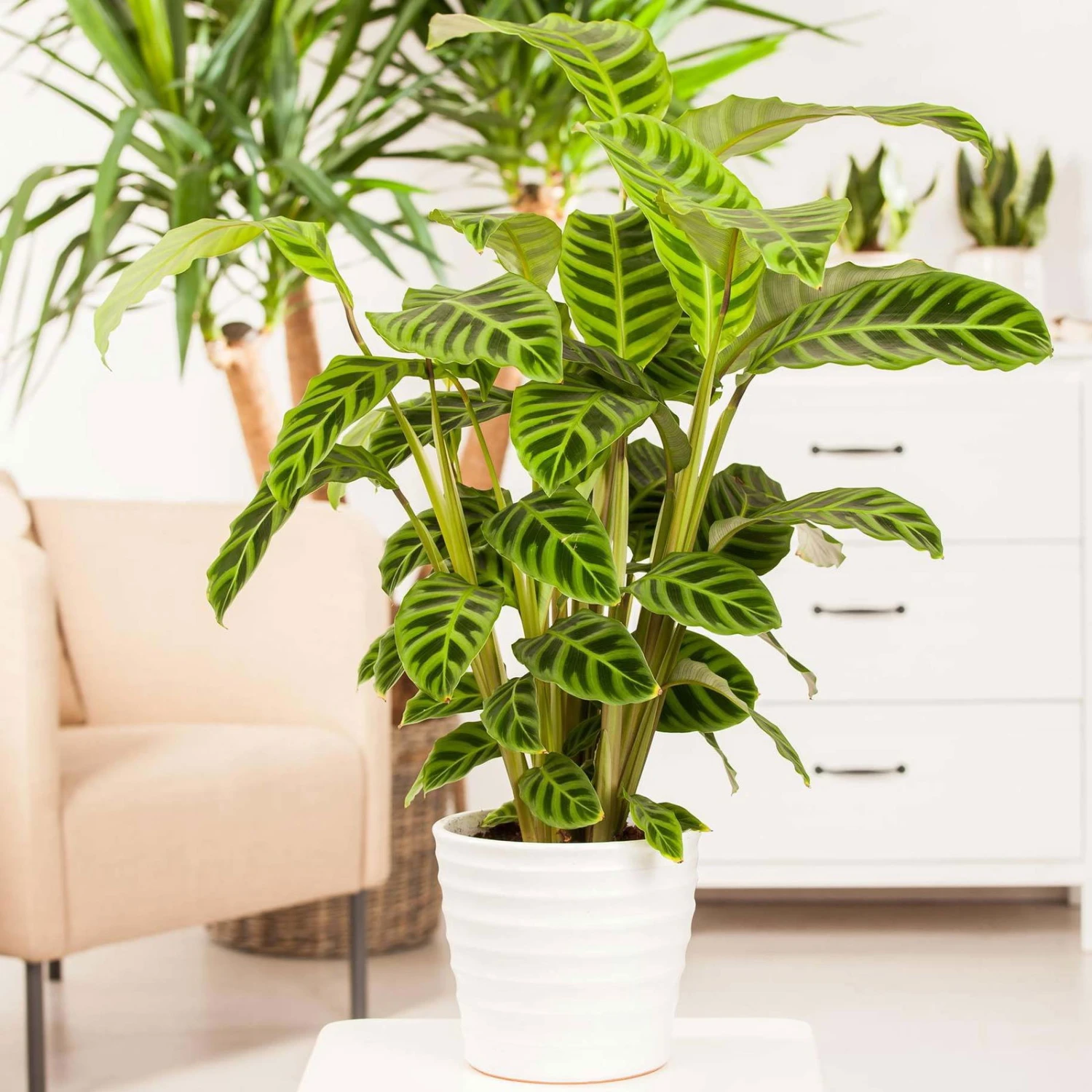 Die Korbmarante zählt zu den ungiftigen Zimmerpflanzen und eignet sich daher wunderbar für Haushalte mit Tieren oder kleinen Kindern.