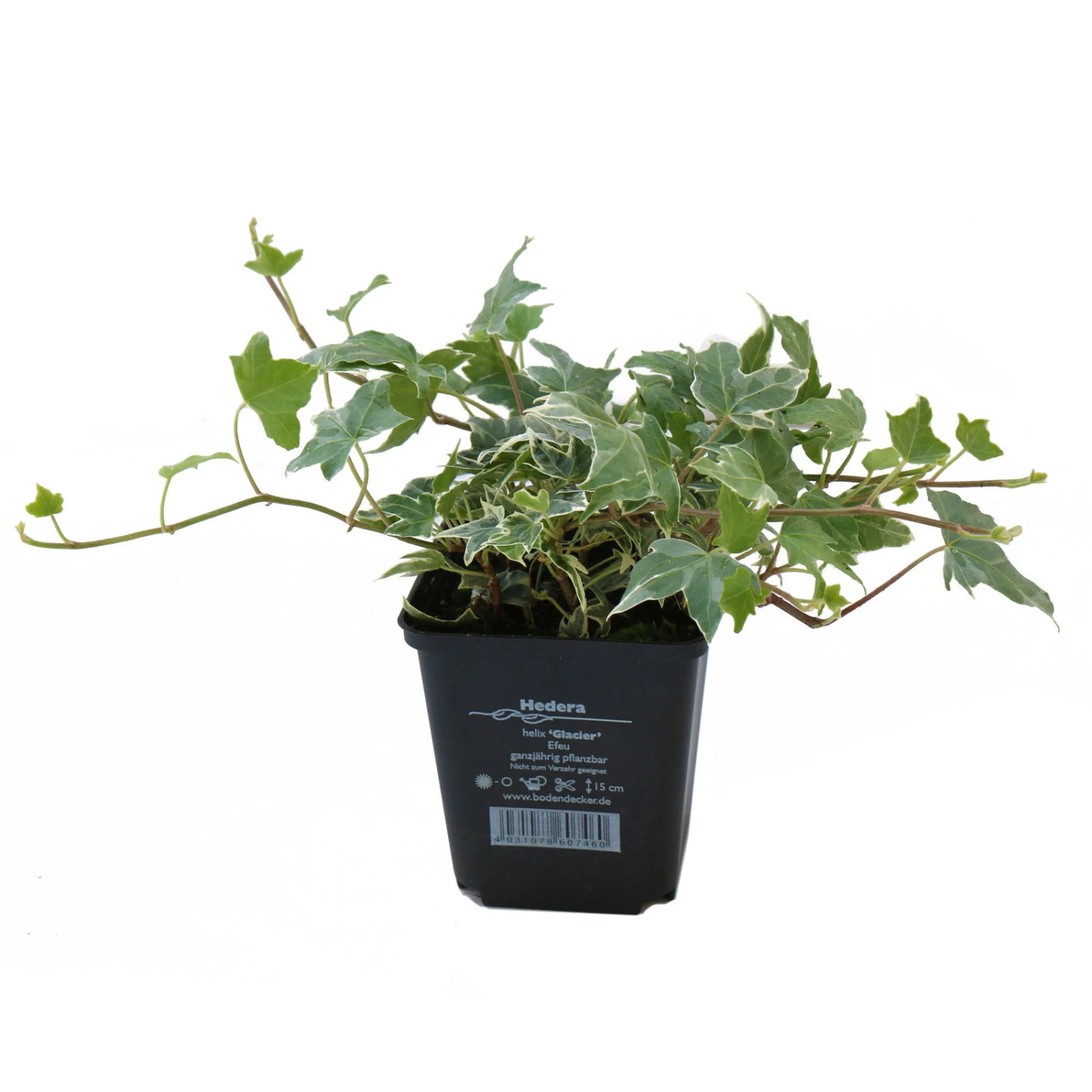 Mit dem etwa 25 cm flach wachsenden weißgrün Efeu ‚Glacier‘ erzielen Sie schnell und unkompliziert eine dichte, sehr robuste und niedrige Bodenabdeckung. Mithilfe seiner Haftwurzeln kann dieser Efeu zudem an Hauswänden oder Bäumen 3-5 m emporklettern und so für eine pflegeleichte und anspruchslose Begrünung sorgen. Bitte beachten, ob sich die Mauern zum Bewachsen durch Haftwurzeln eignen.