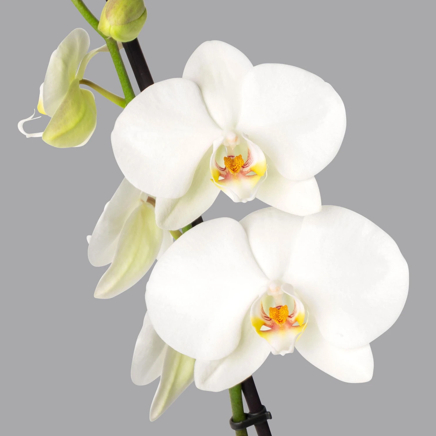 Bei verblühten Orchideen kann der vertrocknete Blütentrieb einfach knapp über dem dritten Auge mit einer scharfen Schere abgetrennt werden. Ein gutes Anzeichen, ob Ihre Schmetterlingsorchidee Wasser braucht, ist außerdem die Farbe der Wurzeln. Sind diese kräftig grün und prall, ist die Pflanze noch genügend mit Feuchtigkeit versorgt. Erscheinen die Wurzeln hellgrau, wird es dringend Zeit, die Orchidee zu gießen.